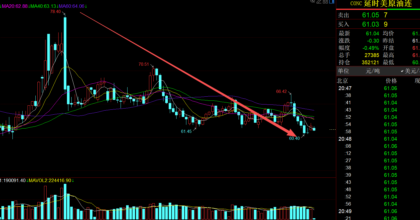 吊诡的是,美原油期货价格自9月26日开始,连续收出了6根阴线。更让部分投资者看不懂的是,美原油期货价格在2022年3月7日创下130.05美元/桶之后,就开始逐渐步入下行通道。到今年4月,美原油期货波动幅度加剧,经常出现连续下跌,甚至单日暴跌超9%的记录。
