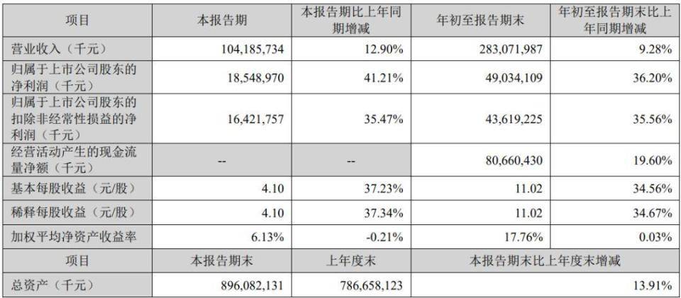 财报显示,宁德时代第三季度营收达1041.9亿元,同比增长12.9%;净利润为185亿元,同比增长41%。