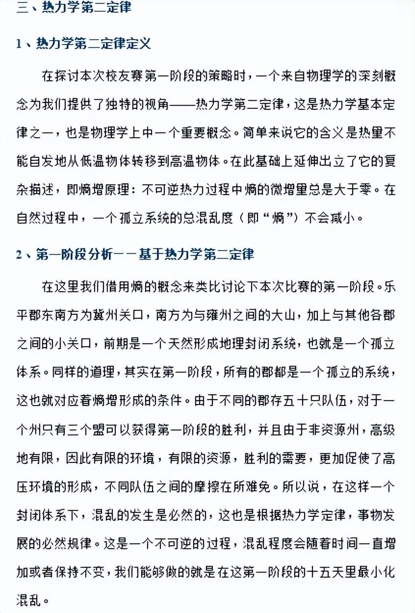 这位博士玩家先是提出 “熵减战略”,通过明确资源分配规则与作战分工,主动降低系统无序度,从根源减少内耗。