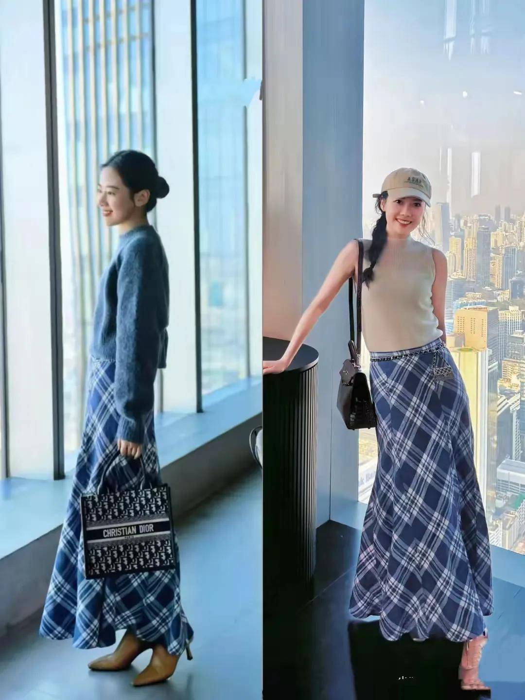 如果在这个春季,不管你选择的是针织毛衣还是针织背心,我个人还蛮推荐大家选择羊绒材质的款式,因为样用菜籽面料柔软度和保暖性能齐佳,穿在身上之后,触感如同云朵般轻柔,好品质的杨勇制品在制作工艺上十分精细,针脚细密,线条流畅,穿在身上后能自然地贴合身体曲线,例如下面这位达人选择了一款无袖的针织上衣,搭配上格纹的鱼尾半身裙,头上戴了一款棒球帽,就能彰显出优雅与高贵。