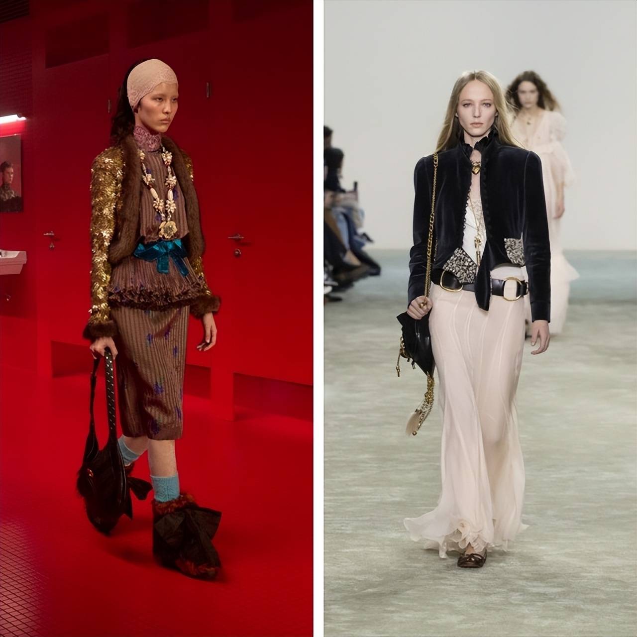 2025-26秋冬,被称为“马基斯马利主义”的极致装饰风格重回潮流,派对复兴带动亮片、闪光面料以及流苏、开叉等动态细节的大量运用。但关键在于,奢华感的展现需兼顾阶层感、节制与品味,而非盲目堆砌。