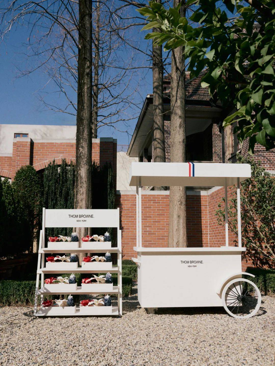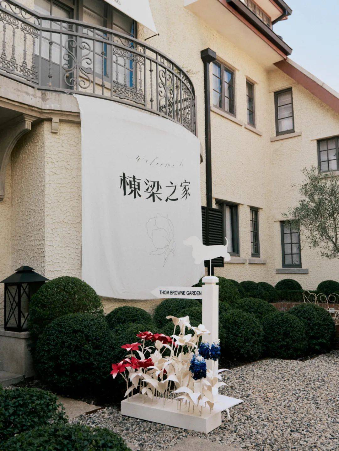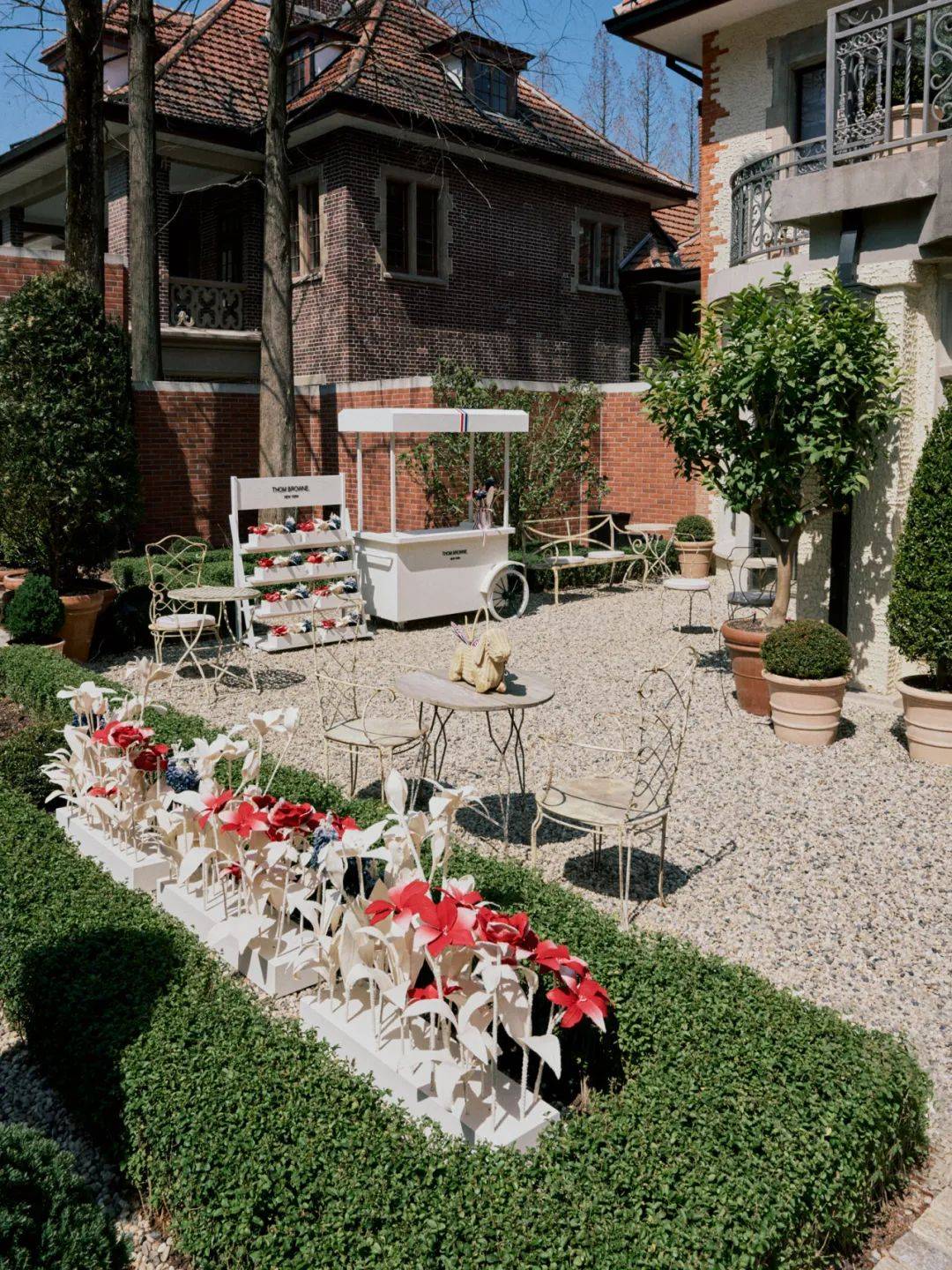 从巴黎高级定制时装秀到北京,再到上海,thom browne花园来到坐落于百年欧式建筑的上海棟梁之家,以象征品牌初心的原色平纹细布为基调,红、白、蓝三色为棟梁花园注入春日的活力,呈现品牌的妙意巧思。