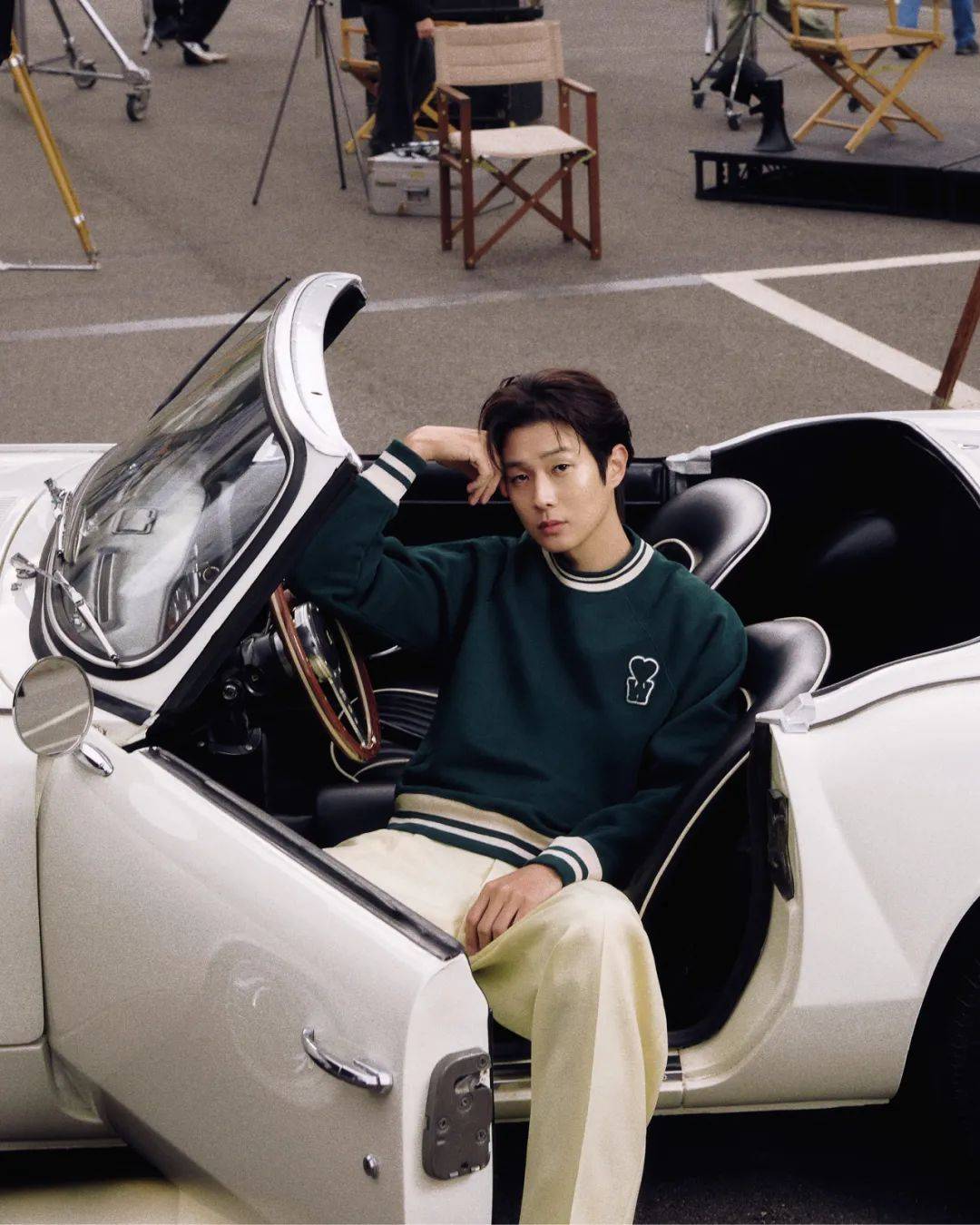全新联名系列围绕品牌标志性的Ami de Cœur爱心图案,将其重新设计为W形的校队徽章。与此同时,绿色作为崔宇植最喜爱的颜色为整个系列奠定了基调,与米白色、海军蓝或黑色搭配,整体配色清新而独特。