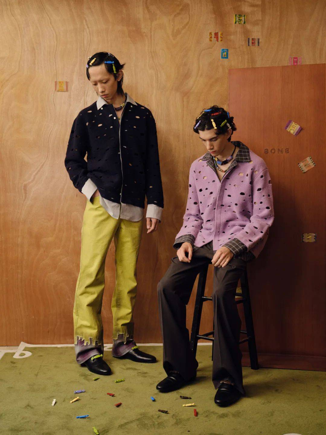 恰逢8ON8成立8周年之际,品牌2025 秋冬系列“The Way Home”以糖果为相应载体,幻化成不同形式贯穿整个系列,例如由糖果结演变而来的鲜明裤袢,夹克上平面糖果形状的口袋条,亦或是复古糖果包装的印花等……