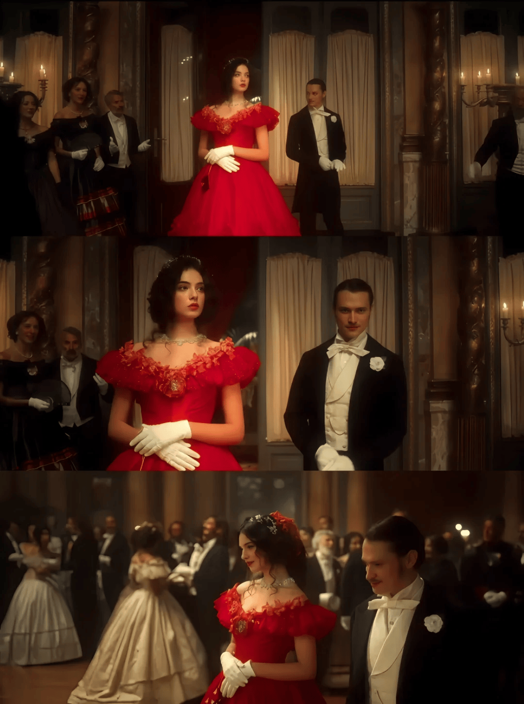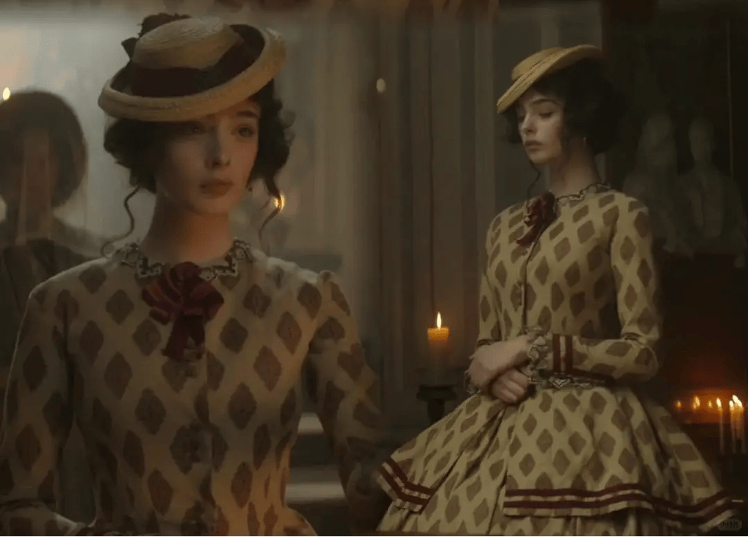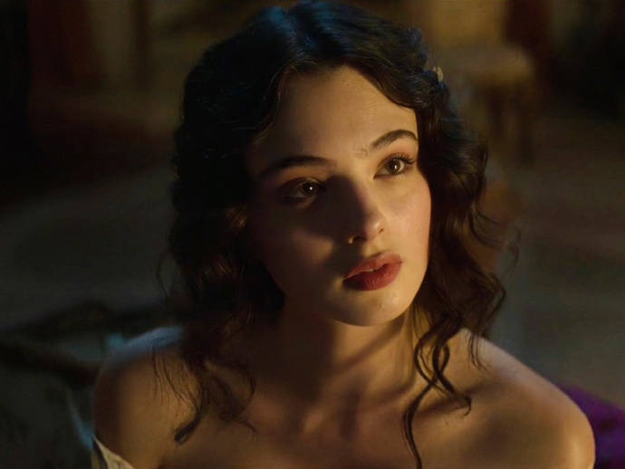 剧中,Deva Cassel展示了多套19世纪中后期欧洲女子的华丽着装,她每一次出场,画面都如同一幅流淌着金色与颓废气息的油画。