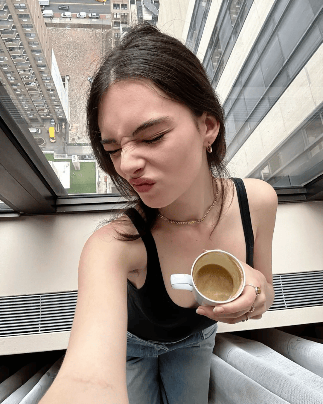 她还钟爱蜜汁自拍角度,尤其喜欢怼脸自拍+疯狂做鬼脸。