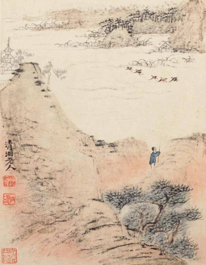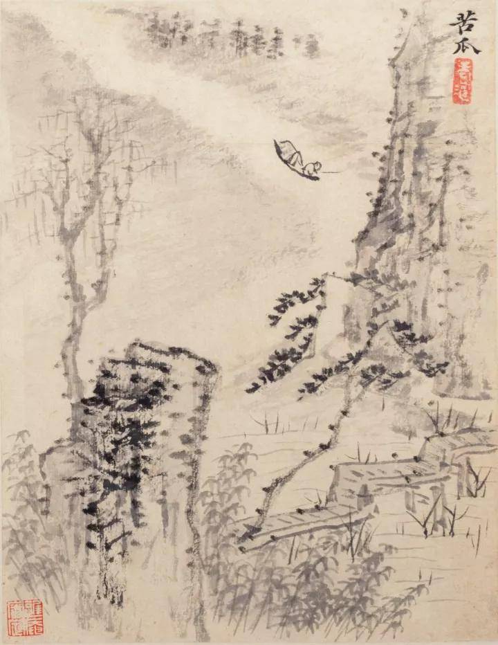 石涛细笔山水册,尺幅虽小而气象阔远!