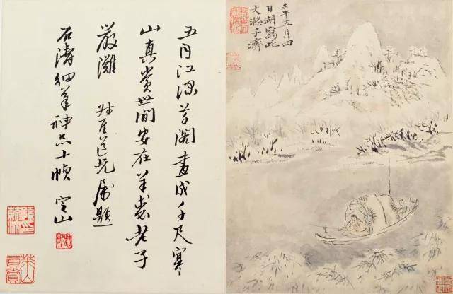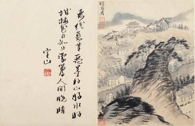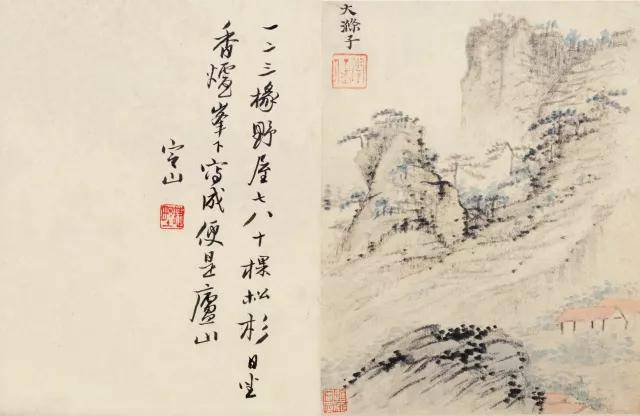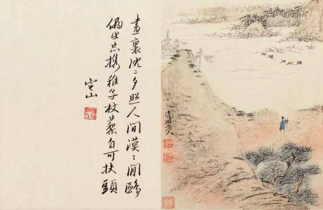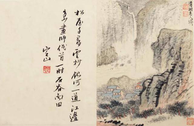 陈定山对题:五月江深草阁,画成千尺寒山。真赏世间安在,羊裘老子严滩。叔厓道兄属题石涛细笔神品十帧。定山。钤印:蝶野