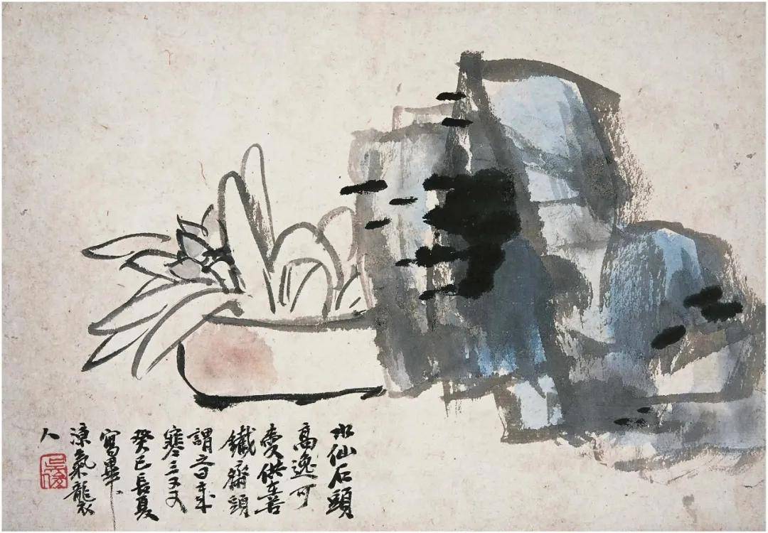 运笔生辣,行枝钩石,偶得篆琉生意。昔人论陋轩诗云,金石气兼桂气,此语当移赠此画。——题《牡丹水仙图》