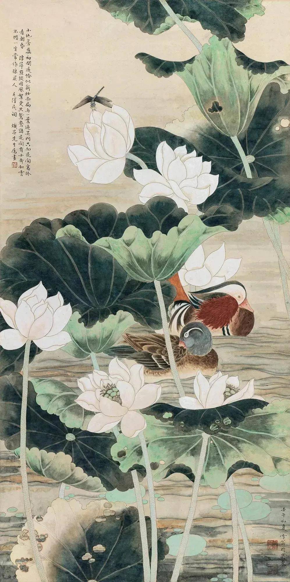 荷花鸳鸯 121x60cm