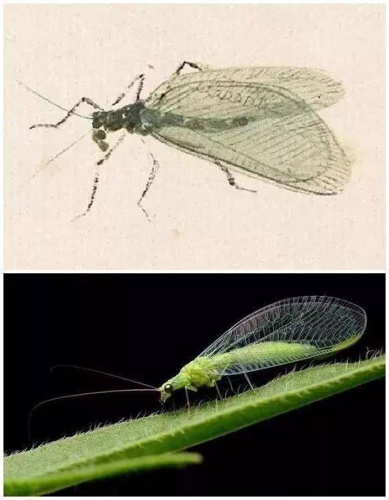 齐白石笔下的草蜻蛉与真实的草蜻蛉对比