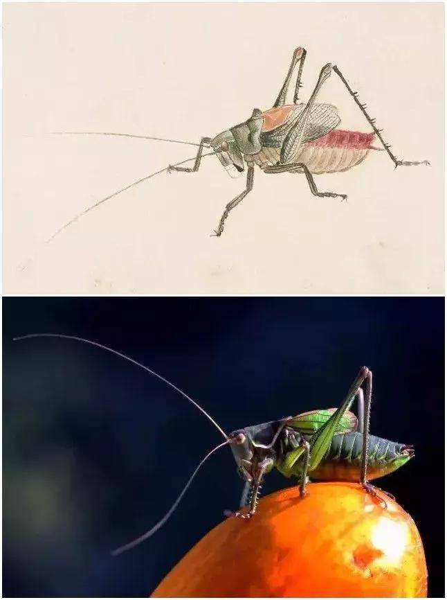 齐白石笔下的蝈蝈和真实的蝈蝈对比