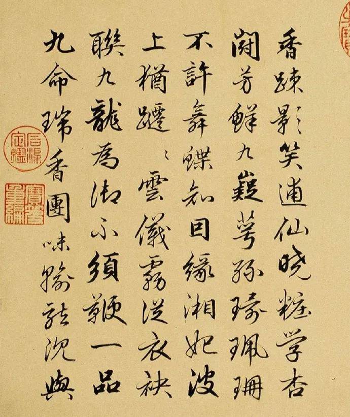 在现存的《刘文正公遗墨》中便可窥探一二,他的楷书虽有馆阁体余韵,但也是工整端严如庙堂礼器,其用笔更是健似寒梅首瘦枝,其中即有欧阳询的峭拔,又有董其昌的疏朗。