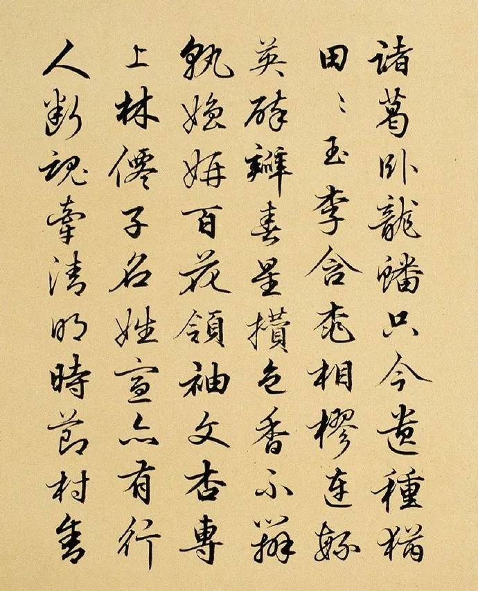 意思是说他在年少时书法是学的赵孟頫,到中年时则改学文徵明的书风,晚年时便不再刻意追求笔画的精细巧妙、工整规范,然而不刻意去追求工整,却自然而然地达到了工整精妙的境界,这才是天下最为高超精妙的书法技艺啊。