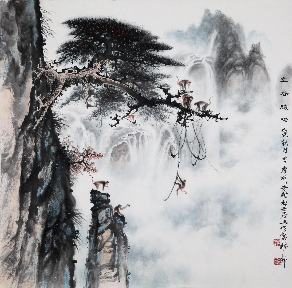石涛说“搜尽奇峰打草稿”,罗树辉先生为了收集素材,先后数次登泰山、黄山、峨眉山、三清山,又游张家界、九寨沟……目识手记,积累了许多名山大川雄奇的景色,化作自己创作的营养,以华滋苍润的笔墨语言,将祖国大好河山雄伟壮丽的景色跃然呈现在扇面上。他的作品《深山听鸟语》、《黄山双剪峰》、《妙境天成》、《灵猴观海》等一批精美的扇面画就是得益于他踏遍群山细心观察整理出来。画家满怀着对祖国山山水水的热爱和激情,以酣畅的笔墨,巧妙地构思,意达笔端,情涌纸墨,方寸之纸,挥洒千里,神驰化外,以博大浩瀚的气势,变化万千的景象,新颖深邃的意境,向人们展示了一幅幅气韵生动、雄伟壮丽的画面。