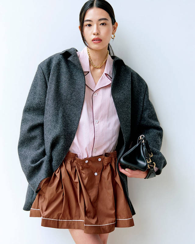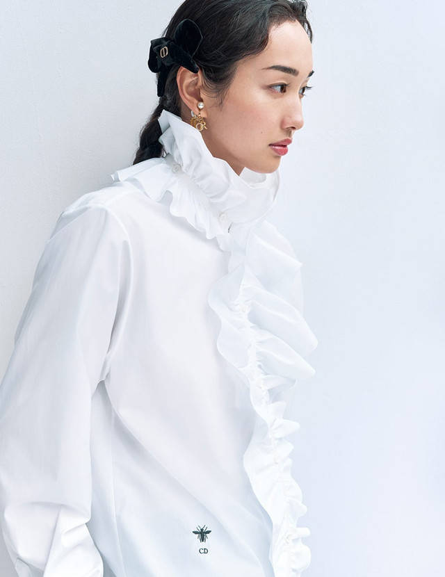 以维多利亚时代为灵感的拉夫领衬衫和修身外套令人耳目一新,通过与简洁锐利元素融合,提升了现代感。其魅力在于优雅中蕴含的凛然气韵。