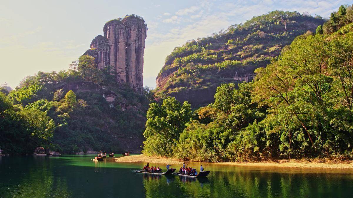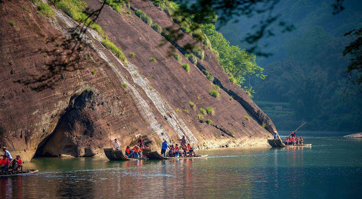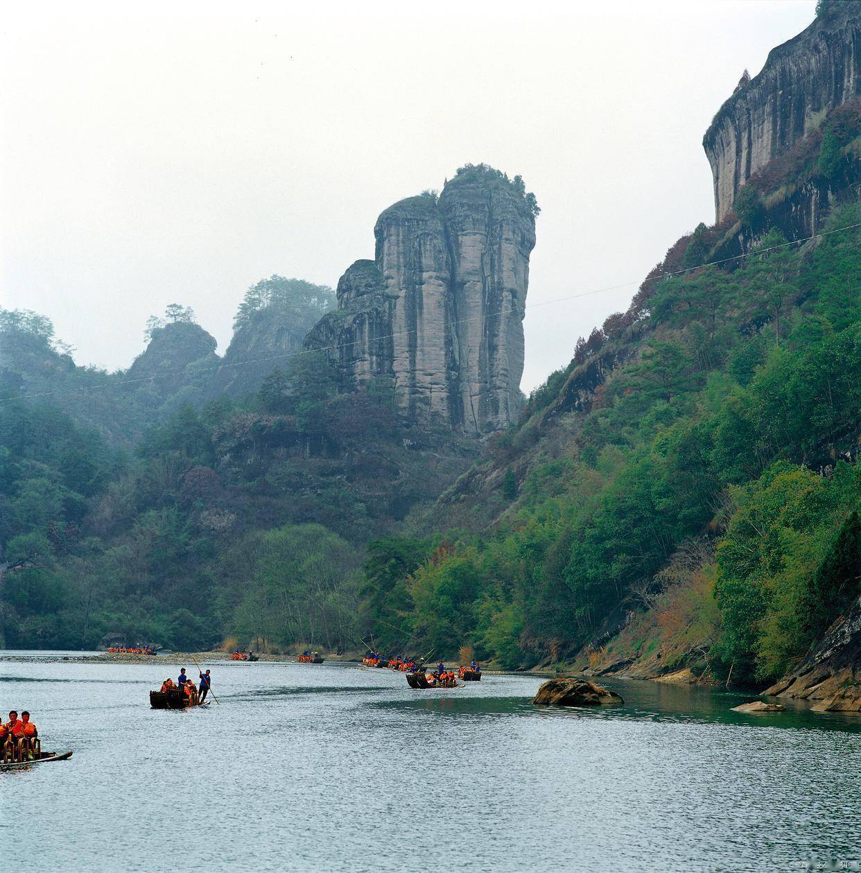 九曲溪是武夷山的灵魂所在,乘一艘竹筏顺流而下,便能领略到 “人在画中游” 的绝美意境。清晨,九曲溪上笼罩着一层薄薄的雾气,宛如仙境。竹筏缓缓前行,两岸的奇峰怪石在眼前一一掠过,筏工们一边撑筏,一边讲述着古老的传说和故事。“看,那是玉女峰,对面的是大王峰,它们就像一对深情的恋人,隔溪相望……” 筏工们朴实的话语,为这山水增添了几分浪漫色彩。游客们或拍照留念,或静静欣赏美景,感受着大自然的宁静与美好。在竹筏漂流的过程中,还能看到当地渔民在溪中捕鱼的场景,他们熟练地撒网、收网,动作一气呵成,展现出人与自然和谐共处的画面。
